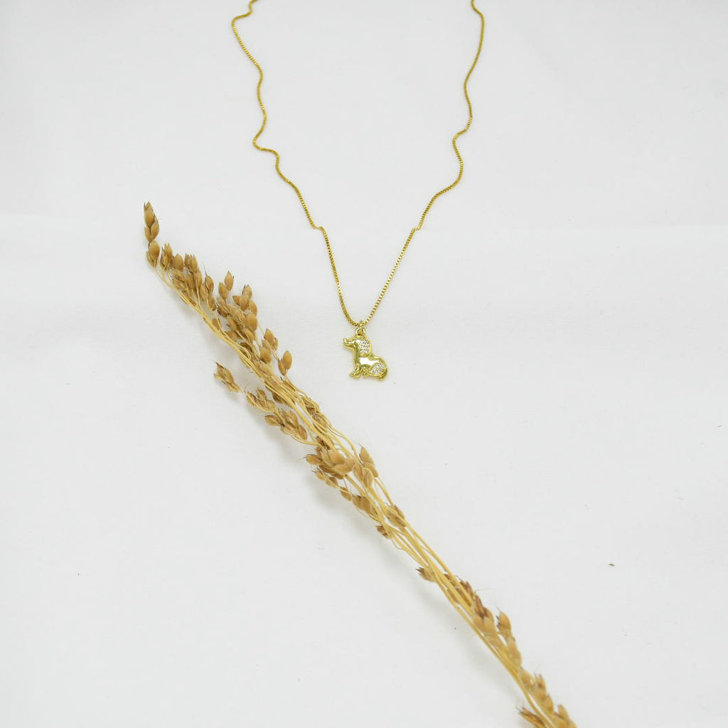 • Cadena y dije en material acero inoxidable con baño de oro de 24klt.
