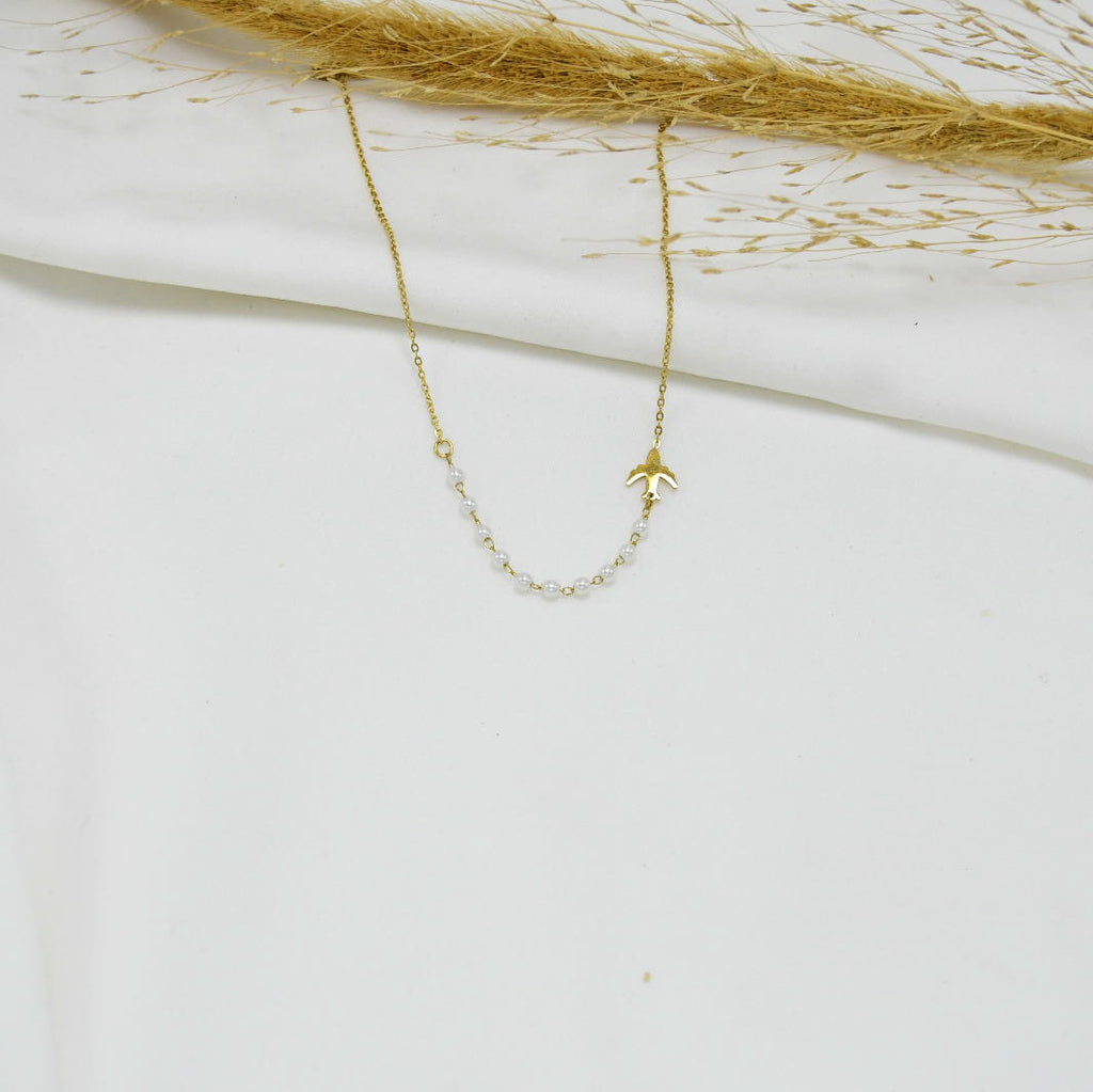 - Cadena y dije en material acero inoxidable con baño de oro de 24klt.