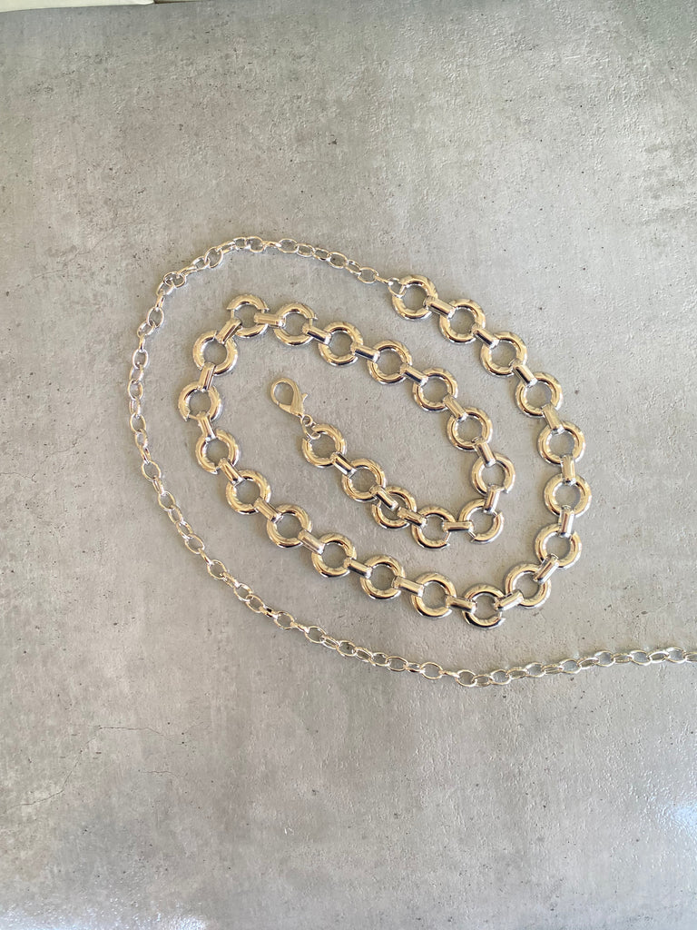 • Cada cinturón está ensamblado con eslabones dorados que aportan brillo y un acabado lujoso.