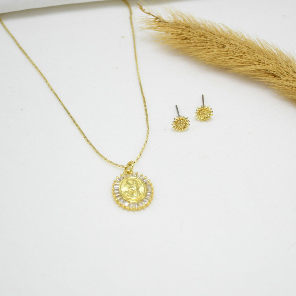 • Cadena y dije en material acero inoxidable L316 bañado en oro de 24klt.