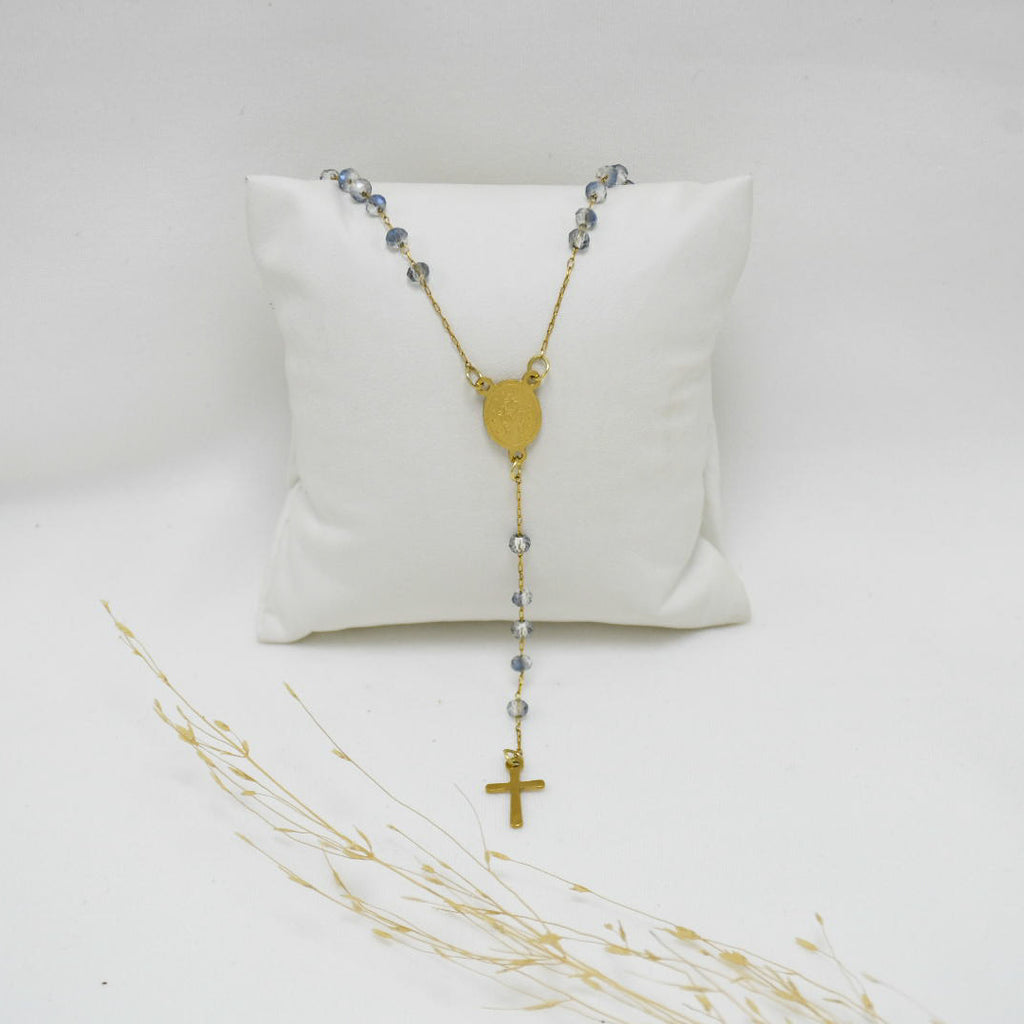 - Rosario en acero inoxidable con baño en oro en 24klt.