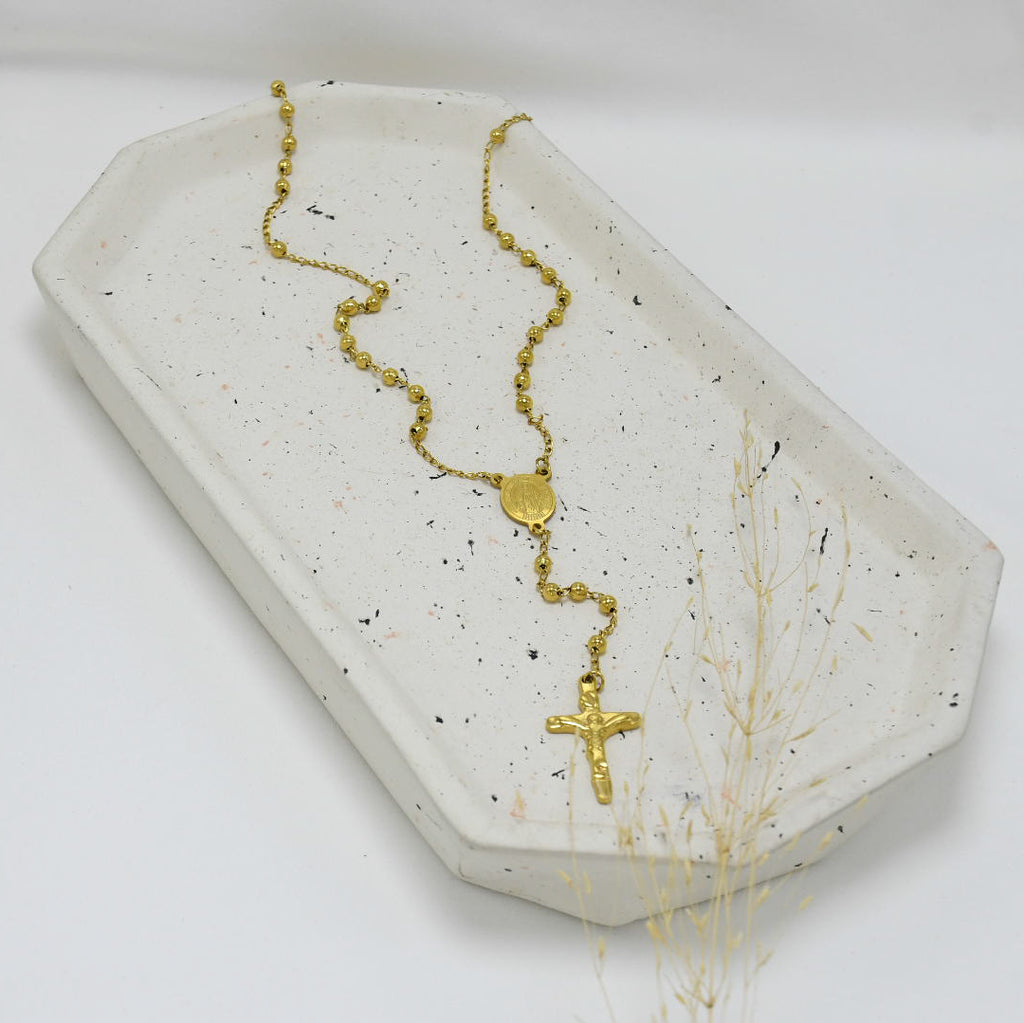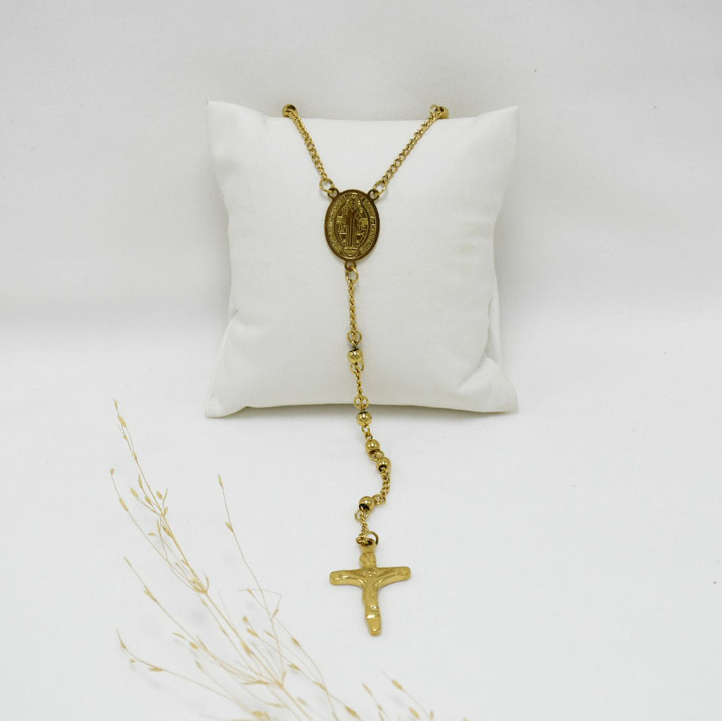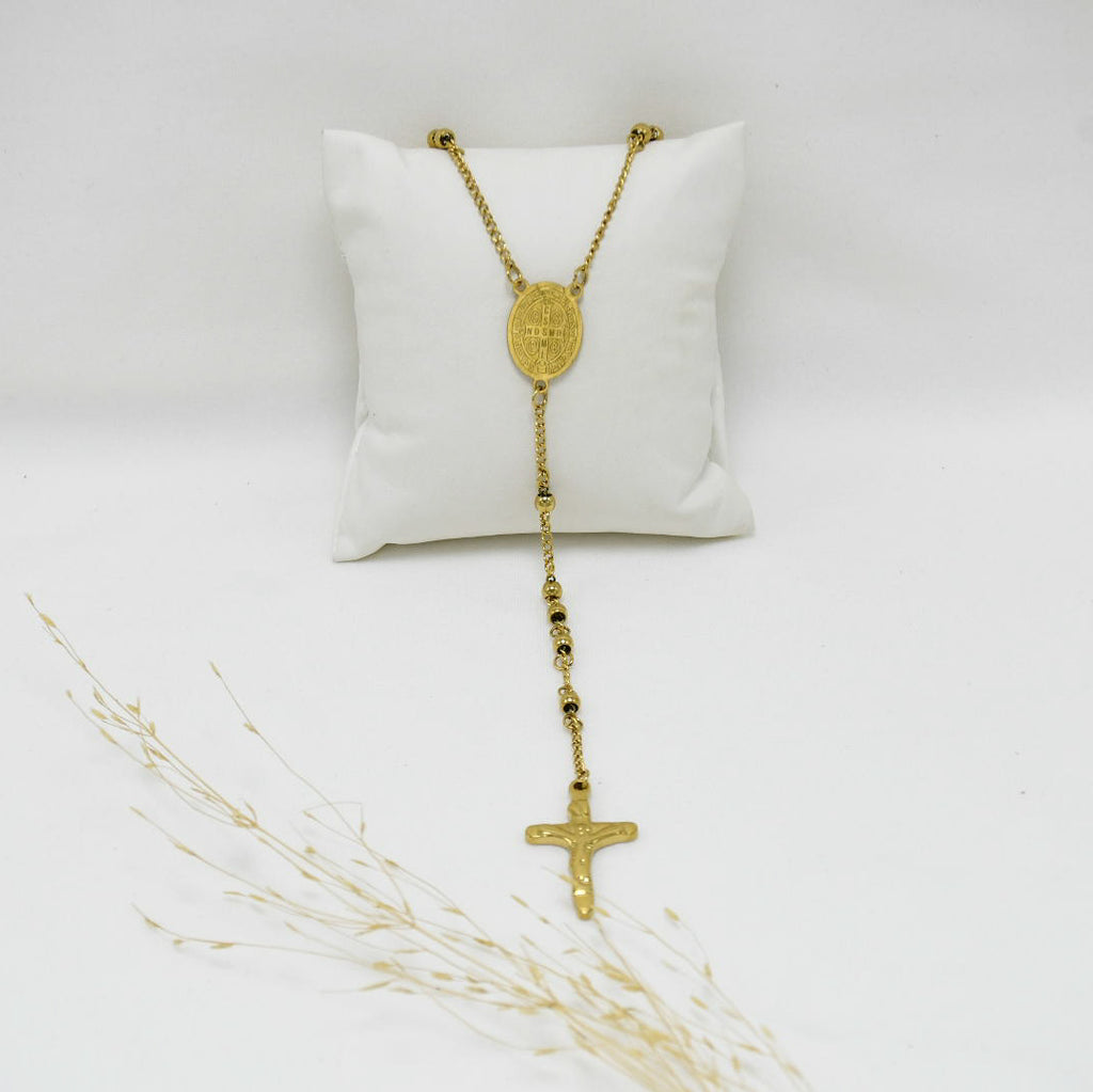 • Rosario en acero inoxidable con baño en oro en 24klt.