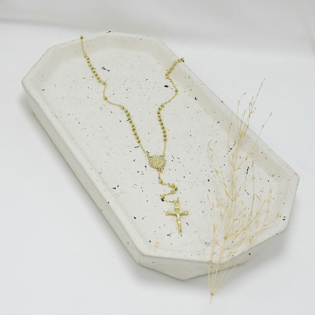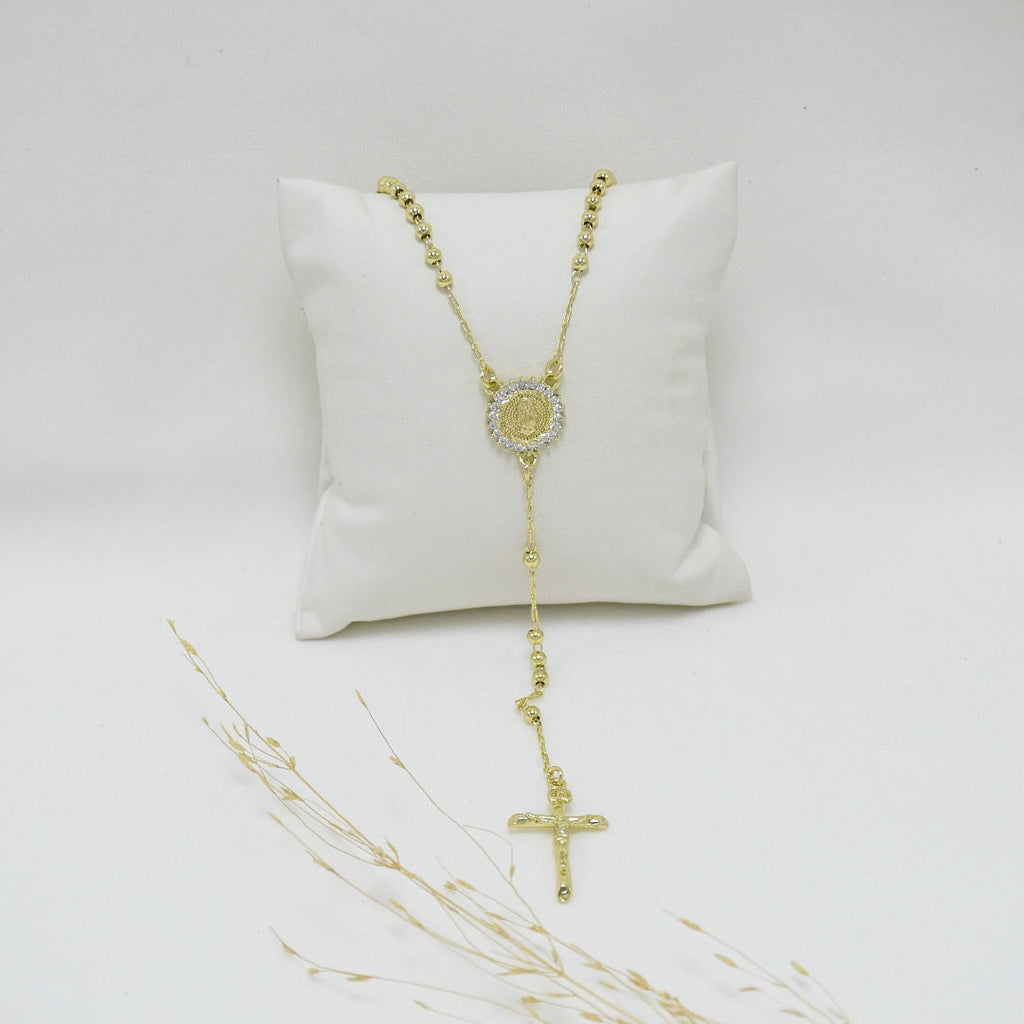 • Rosario en acero inoxidable con baño en oro en 24klt.